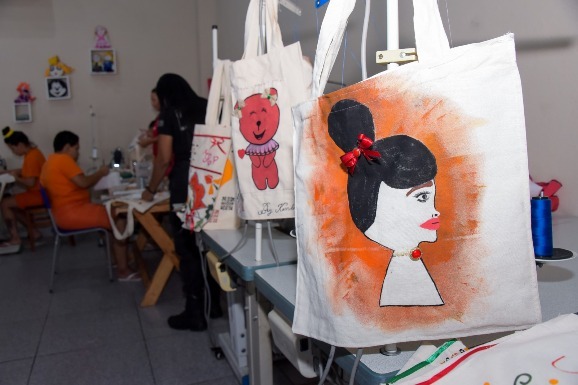 Ao longo do curso, as reeducandas têm elaborado e produzido bolsas ecológicas com algodão cru e nécessaires com material de reutilização. Segundo a professora do treinamento, Veronica Dominguez, a ideia é que as reeducandas aprendam a manejar a máquina, cortar e criar os produtos.