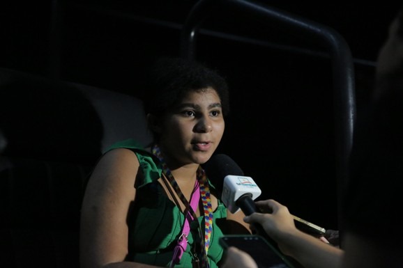A experiência foi especial para Jucicleia Leão, de 13 anos, que esteve pela primeira vez em um cinema. Ela contou que estava animada para assistir a um filme inédito e conhecer o espaço.