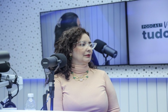 A jornalista e diretora de Televisão e Rádio da ALE-RR, Camila Dall’Agnoll, mediou o podcast e destacou o compromisso do Parlamento roraimense com a saúde mental.