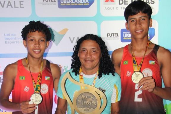 Sob o comando do professor Wallace Souza, os jovens atletas Matheus Vinícius Almeida dos Santos e Paulo Henrique Mota Martins, ambos da Escola Estadual Antônio Ferreira de Souza, de Boa Vista, brilharam na areia, mostrando técnica e entrosamento impecáveis.