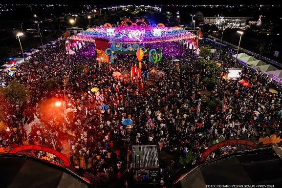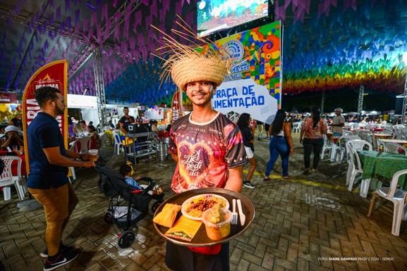 Na área gastronômica, a praça de alimentação conta com cardápios típicos da época, como milho-cozido, pamonha, vatapá e paçoca, além de bebidas regionais e sobremesas que agradam todos os gostos. Já a feirinha de artesanato reúne produtos feitos à mão, bijuterias, acessórios juninos e lembranças do maior arraial da Amazônia.