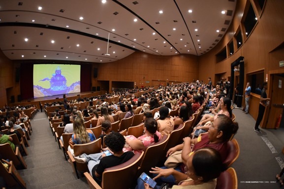 A Sala Roraimeira também recebeu a exibição do curta-metragem “O Chocalheiro”, dirigido por Vanessa Brandão e Leonardo Brandão. Esta produção local, marcada pelo suspense dramático, resgata narrativas de raízes familiares e ancestrais, evidenciando a riqueza cultural de Roraima e a importância da preservação de um dos biomas mais invisibilizados da Amazônia: o lavrado roraimense.