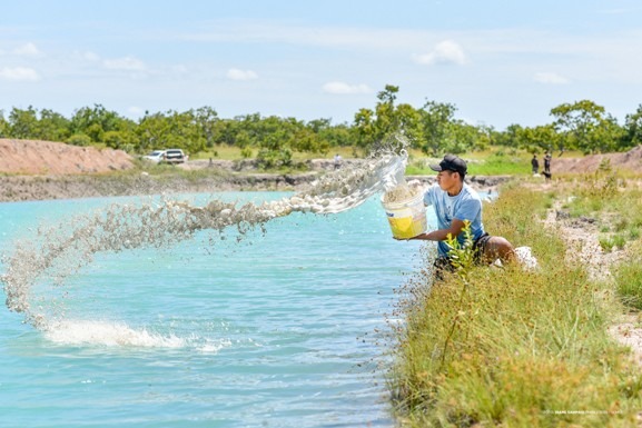 Os tanques possuem tamanho de 150x20m e serão povoados nos próximos dias, após desinfecção e controle do PH da água.