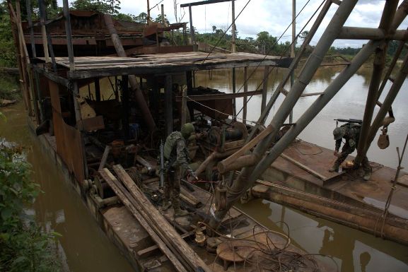 Após o deslocamento aéreo, os militares desembarcaram e iniciaram o vasculhamento da região para encontrar trilhas de acesso às dragas. Foram localizados um motor, uma antena de internet via satélite, uma bateria de caminhão, um painel solar e equipamento de mergulho.