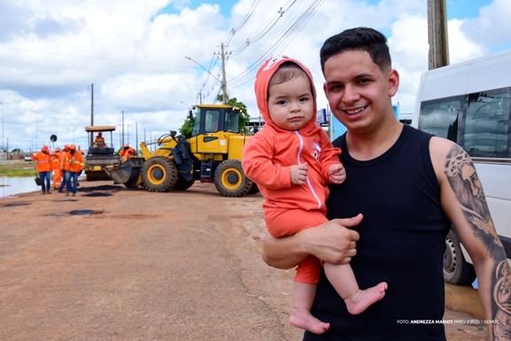 O empresário Pedro Henrique Oliveira, de 21 anos, mora há quatro anos no bairro Cidade Satélite. Nos momentos de lazer, costuma passear com sua filha Zaya Maia, que está com 9 meses de vida. Ele acompanhou de perto os trabalhos da Operação Tapa-Buraco na avenida Carlos Pereira de Melo.