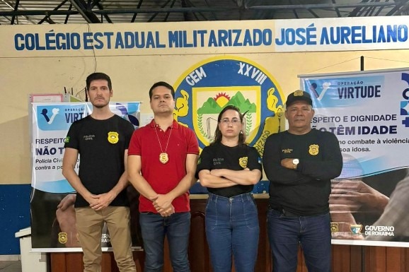 Com o propósito de cuidar e proteger, a Polícia Civil de Roraima realizou nesta segunda-feira, 6, uma ação educativa voltada à conscientização sobre o combate à violência contra pessoas idosas. A atividade ocorreu na Escola Estadual Militarizada José Aurelino da Costa, no município de Cantá, e reuniu alunos do EJA (Ensino de Jovens e Adultos).