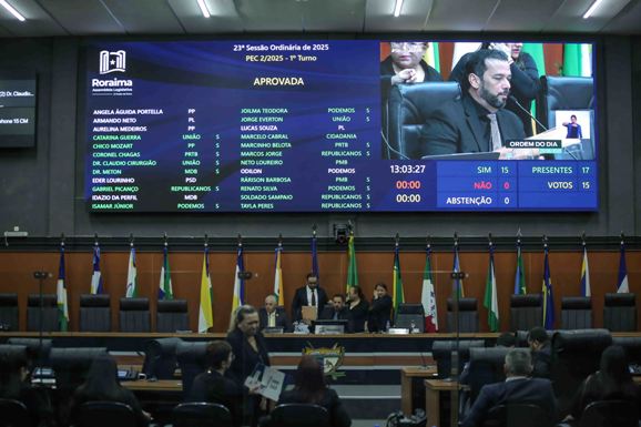 Durante sessão ordinária realizada nesta quarta-feira, 25, a Assembleia Legislativa de Roraima (ALE-RR) aprovou, em primeiro turno, a Proposta de Emenda à Constituição (PEC) 02/2025, que altera e acrescenta dispositivos constitucionais, relativos às emendas parlamentares ao projeto de lei orçamentária anual (LOA). A matéria recebeu 15 votos favoráveis.