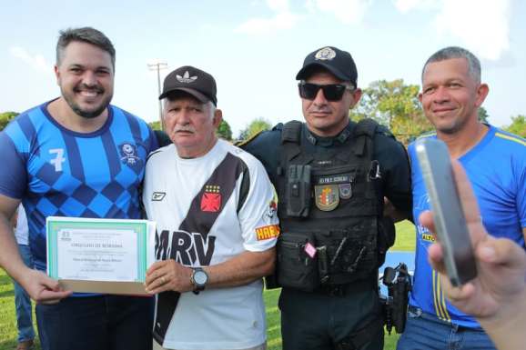 A gente fica feliz em participar de momentos como esse, unindo a alegria do futebol com a entrega dessas comendas aos pioneiros do esporte no município”, completou Neto Loureiro.