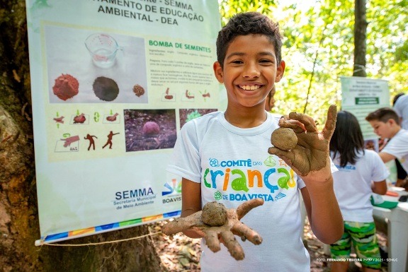 O Bosque dos Papagaios foi palco de aprendizado, aventura e cuidado com a natureza nesta quinta-feira, 23. Durante a 9ª Reunião do Comitê das Crianças de Boa Vista (CCBV), os pequenos tiveram a manhã repleta de descobertas sobre a fauna e a flora regional, participaram do plantio de mudas e aprenderam a confeccionar bombas de sementes.