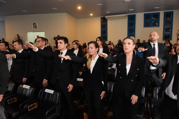 Sarah Oliveira dos Santos, aprovada para o cargo de odontolegista, fez o juramento em nome da turma e disse que pretende entrar em exercício em breve.