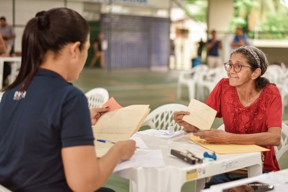 Atendimento ocorreu no último sábado, 17, na Escola Cunhatã Curumim. Moradores deram entrada no processo de titulação dos imóveis.