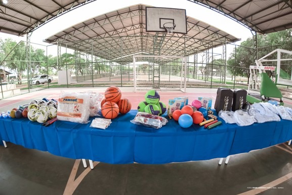Entre os materiais distribuídos estão colchonetes, bolas, cordas, jogos pedagógicos, halteres, cestas de basquete, redes de futebol, tatames, cones, entre outros. Adquiridos com recursos próprios, os itens vão beneficiar mais de 1.600 alunos do Centro de Iniciação Esportiva (CIEP), e dos projetos Qualidade de Vida e Academia Aberta.