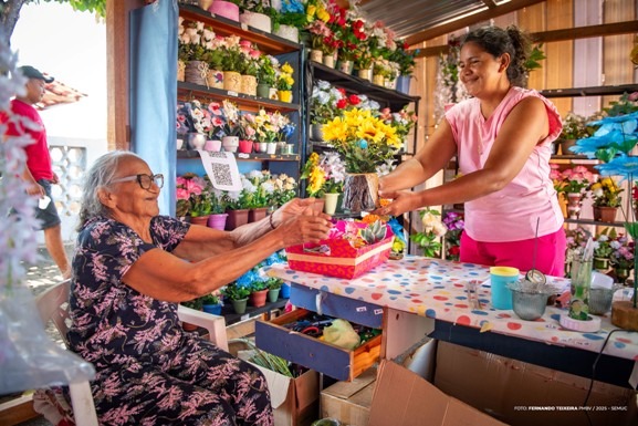Aos 82 anos, Elzaides Alves dos Reis, mantém viva a tradição de vender flores há 15 anos, especialmente nesta época do ano, quando muitas pessoas vão aos cemitérios prestar homenagens aos entes queridos no Dia de Finados. Ela se prepara para atender à clientela.