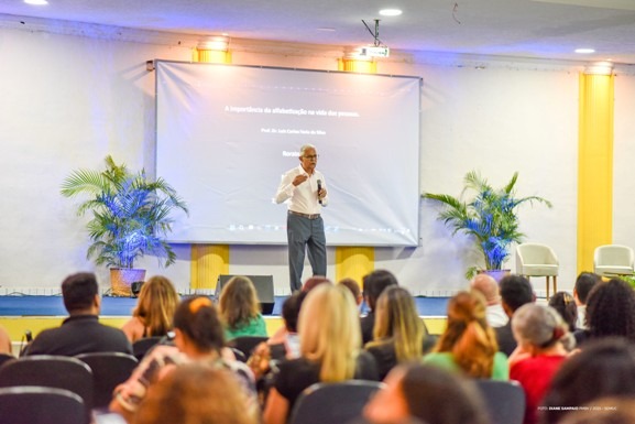 A palestra ministrada pelo prof. Dr. Luiz Carlos abordou duas perspectivas principais. A primeira é o impacto existencial do fracasso, especialmente como isso pode provocar sentimentos de vergonha, afetando diretamente o desenvolvimento emocional das crianças e que interfere na forma como elas percebem a si mesmas e suas capacidades.