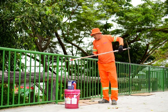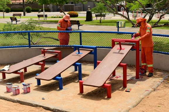Atualmente, dez praças estão com cronogramas de serviços que incluem pintura de pisos, brinquedos e muretas, além de reparos em alambrados, calçadas, pavimentação com paver, meios-fios e paisagismo.