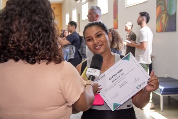 Durante a entrega dos certificados aos concluintes, Sampaio aproveitou para dar as boas-vindas aos novos matriculados nos cursos presenciais de arte com balões, inglês básico, bolo de pote e bordado à mão livre, e ouviu pedidos para que sejam oferecidos outros idiomas, entre eles francês.