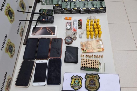 Neste final de semana, a Polícia Rodoviária Federal (PRF) e o Ibama realizaram ação conjunta de enfrentamento ao garimpo ilegal e apreenderam uma aeronave, uma arma de fogo, veículos, eletrônicos, mais de 500 munições e insumos sendo transportados para região de garimpo em Terras Indígenas. A ação ocorreu na região rural de Mucajaí-RR.