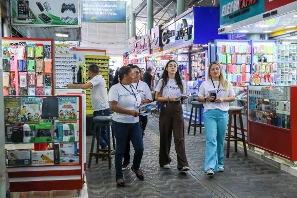 Ação percorreu ruas do centro de Boa Vista com distribuição de panfletos e esclarecimento sobre direitos nas compras presenciais e online.