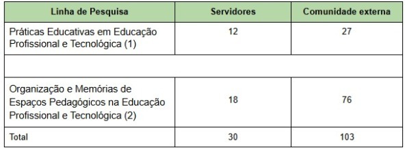 O documento está organizado de acordo com a linha de pesquisa e o segmento do público.
