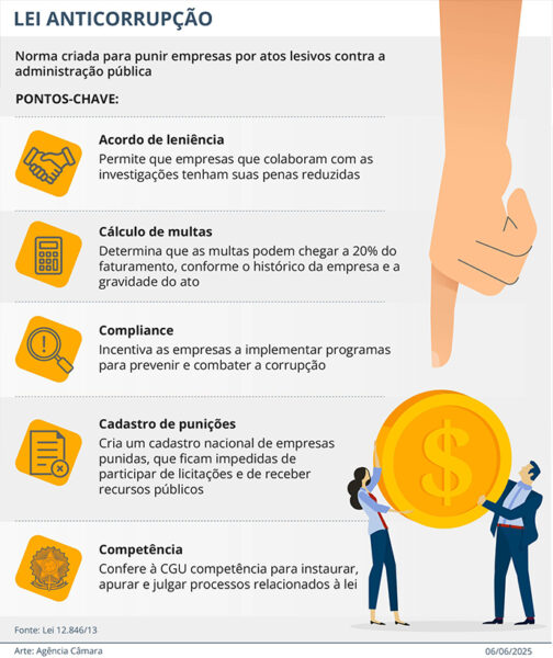 Em análise na Câmara dos Deputados, a proposta altera a Lei Anticorrupção.