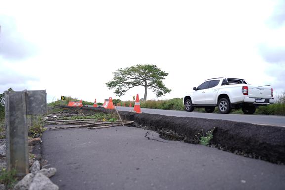 A erosão está em uma curva da BR-174 que antecede a cabeceira da ponte, no sentido de quem vai para a capital, Boa Vista. O problema estaria aumentando e atingindo os dois lados da rodovia, especificamente nos acostamentos.