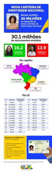 No estado, foram 14,7 mil registros de pessoas do sexo feminino (51,02%) e 14,1 mil do sexo masculino (48,98%). A média diária de emissões é de 26. Só no mês de julho de 2025, foram registrados mais de 3,4 mil documentos.