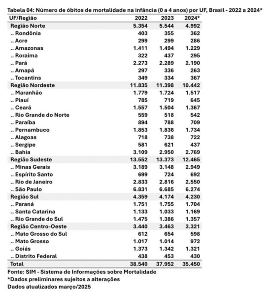 Em 2024, Roraima registrou 295 óbitos infantis. O número representa uma queda em relação aos anos anteriores — foram 437 em 2023 e 322 em 2022.