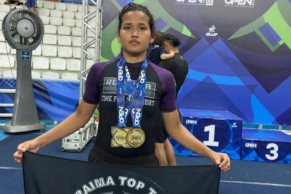 A casca-grossa Adria Lourena Falcão, da categoria adulto e faixa roxa, foi campeã no absoluto Gi e na categoria NoGi, e prata na categoria Gi. Ela desbancou rivais de renome nacional e levou as cores de Roraima no topo.