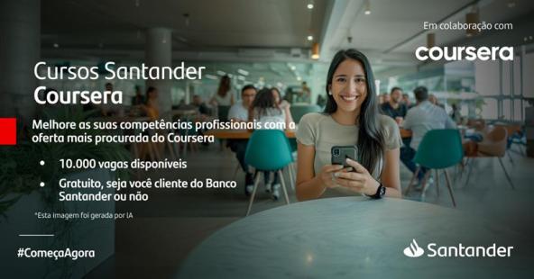 O Santander firmou uma parceria com a plataforma global de aprendizagem online Coursera, que irá oferecer 10 mil bolsas gratuitas para acessar todo o conteúdo de treinamento da plataforma por um ano. Os contemplados poderão se candidatar a uma das vagas em cursos relacionados com marketing e comunicação, soft skills, critérios de sustentabilidade ESG (ambiental, social e governança), ciência de dados ou cibersegurança, bem como certificações profissionais da IBM, Microsoft, Google ou AWS, entre outros. As inscrições podem ser feitas até 19/03/205 na plataforma Santander Open Academy.