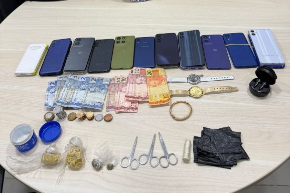 Durante a ação, dois usuários foram abordados ao saírem do imóvel após comprarem entorpecentes. No interior da residência, as equipes apreenderam porções de substâncias análogas a crack e maconha, dinheiro trocado, celulares, balanças de precisão e materiais utilizados para embalo. Parte da droga estava enterrada no quintal. O material apreendido será periciado para complementar as investigações.