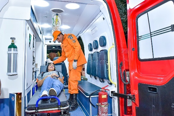 Além da segurança em relação ao fogo e focos de incêndio, o Corpo de Bombeiros também atua no bem-estar e garante atendimentos de saúde para a população, quadrilheiros e todos que estão trabalhando nessa grande festa.