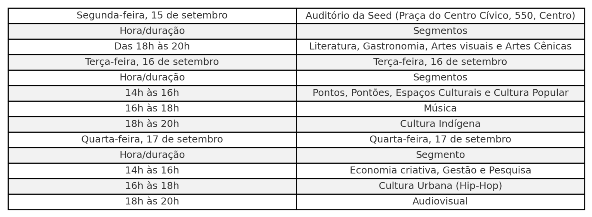 Os encontros ocorrerão no auditório da Seed (Secretaria de Educação e Desporto), na Praça do Centro Cívico, conforme o cronograma estipulado pela Secult. O objetivo é definir, de forma participativa, como serão aplicados mais de R$ 11 milhões destinados ao setor cultural de Roraima.