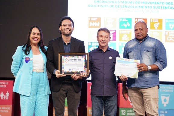O Governo do Estado, por meio da Setrabes (Secretaria do Trabalho e Bem-Estar Social) e em conjunto com o Movimento Nacional dos ODS (Objetivos de Desenvolvimento Sustentável) Roraima, realizou na sexta-feira, 5, no CAF (Centro Amazônico de Fronteiras) da UFRR (Universidade Federal de Roraima), a solenidade de entrega do Prêmio Selo ODS 2024 de boas práticas das iniciativas exitosas aos gestores.