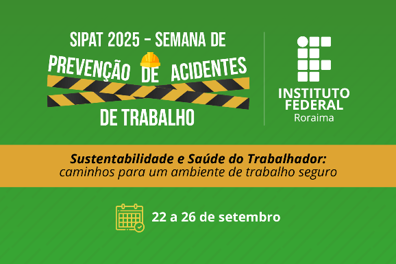 No período de 22 a 26 de setembro, o Instituto Federal de Roraima (IFRR) promove a Semana Interna de Prevenção de Acidentes do Trabalho (Sipat 2025) com o tema “Sustentabilidade e Saúde do Trabalhador: caminhos para um ambiente de trabalho seguro”. A iniciativa é organizada pela Coordenação de Qualidade de Vida e Seguridade Social (CQVSS), por meio das Comissões Internas de Saúde e Segurança do Servidor Público (Cissps) e da Equipe Multiprofissional, e busca reforçar a cultura de segurança e saúde no ambiente laboral em todas as unidades do instituto.