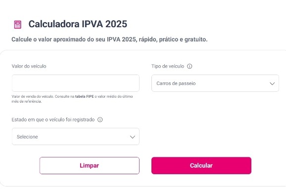 Nova ferramenta permite simular valor a ser pago de acordo com o Estado, ano de fabricação e valor do veículo.