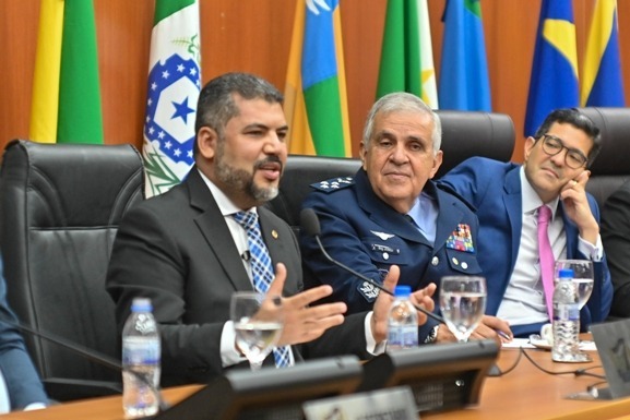 “Nas décadas de 1970 e 1980, o governo federal implementou políticas de ocupação desta região para garantir a soberania nacional. Muitos militares foram enviados para cá, alguns com relutância, mas a maioria, ao conhecer essa terra, sua natureza exuberante, suas praias de rio, suas florestas, seu modo de vida e sua segurança, acaba se apaixonando. Muitos, quando chega a hora da transferência, pedem para permanecer aqui. Nesse espírito, dou-lhe as boas-vindas e reafirmo que Roraima está de portas abertas para o senhor, para sua equipe, para o Superior Tribunal Militar e para todos os integrantes das Forças Armadas”, destacou o presidente do Poder Legislativo, Soldado Sampaio (Republicanos), na abertura da sessão.