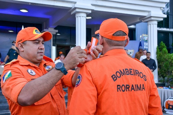 Foram entregues 30 sopradores de ar do tipo costal para combate a incêndio florestal, adquiridos por R$ 118.350,00 com recursos do Fundo de Reequipamento do CBMRR – FREBOM; 26 centrais de ar de 12.000 BTUs, adquiridos por R$ 47.892,00 com recursos do Fundo Estadual de Segurança Pública de Roraima – FESP; 20 centrais de ar de 24.000 BTUs, adquiridas por R$ 69.391,00 do FESP; e um lote de 40 itens de material de salvamento em altura, no valor de R$ 342.286,84, com recursos do convênio com a Concessionária dos Aeroportos da Amazônia S.A. (VINCI).
