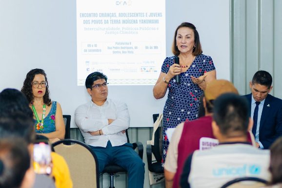 Conselheira Cilene Salomão participou de evento promovido pela UnB que discutiu políticas públicas e justiça climática voltadas a crianças e adolescentes Yanomami e Ye’kwana.