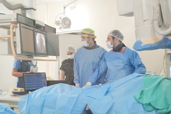 O especialista Luiz Gustavo Bravosi, eletrofisiologista cardíaco com formação na Universidade McGill, no Canadá, veio do Rio Grande do Sul a convite do Dr. Bruno para realizar os primeiros implantes e capacitar a equipe local, de modo que os próximos procedimentos possam ser feitos por profissionais da própria unidade.