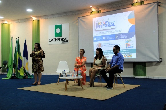 O evento, que tem como tema “Ensino em tempo Integral: tempos e espaços para a promoção da educação com qualidade e equidade” contou com palestra de abertura de Valdirene Alves de Oliveira, coordenadora do Ensino Médio do MEC (Ministério da Educação), que falou sobre a importância do tempo integral da formação dos estudantes da Educação Básica.