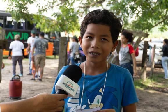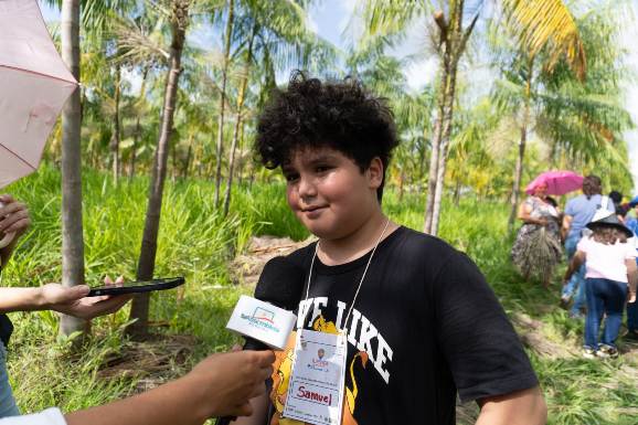 “Eu achei muito legal e fiquei animado em conhecer a fazenda. Essa foi minha primeira vez viajando de ônibus e vendo uma árvore de açaí. Achei que ela fosse menor. Toquei na fruta e achei dura, bem diferente do que a gente imagina quando toma suco ou come sorvete”, relatou.