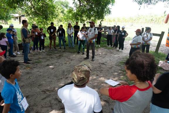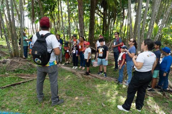 Durante o passeio, as crianças e seus familiares conheceram de perto o processo de cultivo do açaí, desde o plantio até a colheita. A visita foi guiada por um instrutor que compartilhou a história do local e explicou como o fruto é cultivado. Os participantes puderam tocar nos caules, experimentar o açaí in natura e até plantar novos pés da planta.