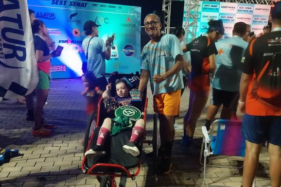“Minha filha não fala, não anda e depende 100% da gente, todos os dias. Corremos juntos desde quando Ana Clara tinha oito anos e percebemos que ela começou a interagir porque ela conversa com a gente com os olhos. E quando ela teve essa reação, de se sentir bem, investimos na corrida de rua. Em Manaus, a gente fazia parte do sistema Sest Senat”, contou o pai da garota.
